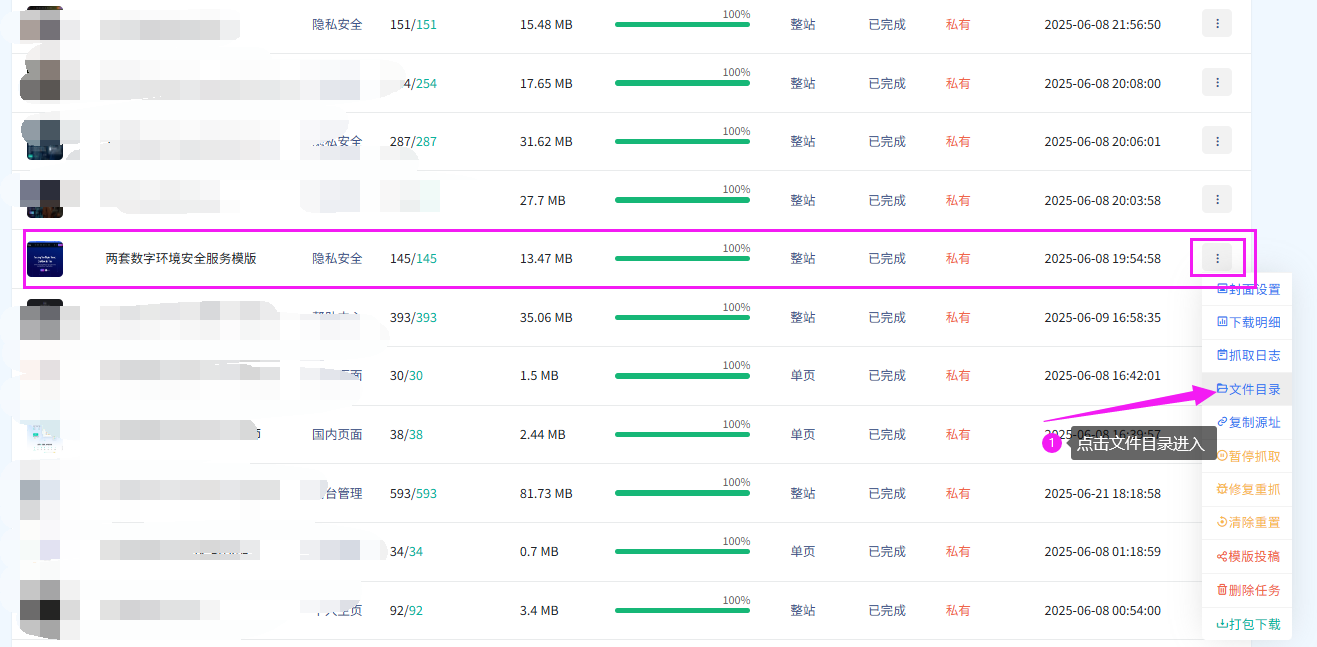 找到刚才生成的快照任务,点击下拉菜单,进入“文件目录”界面。