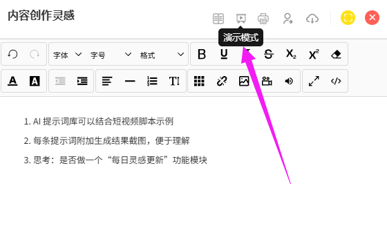 1、支持演示模式: 直接点开备忘录的演示模式,笔记可以变成开会的演示材料