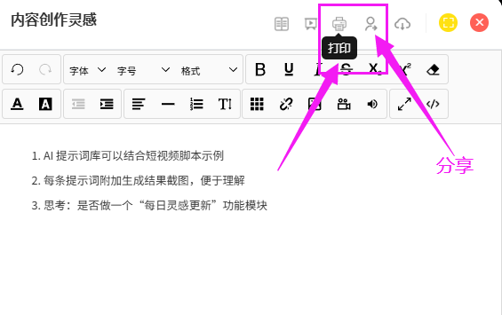 3、支持分享与打印: 写好的内容可以一键分享给同事,或者直接打印出来存档,这种体验真的很加分。